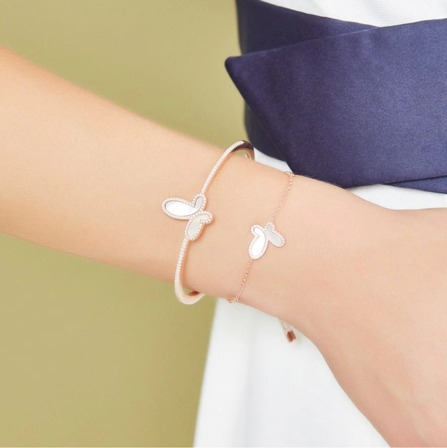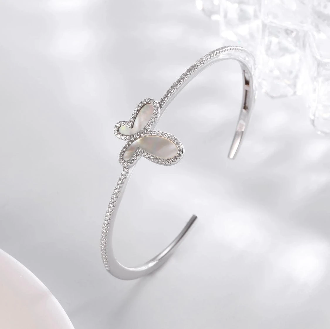 Simply Gorgeous! 18k Gold plated silver butterfly bracelet with mother of pearl wings, encrusted with CZ.