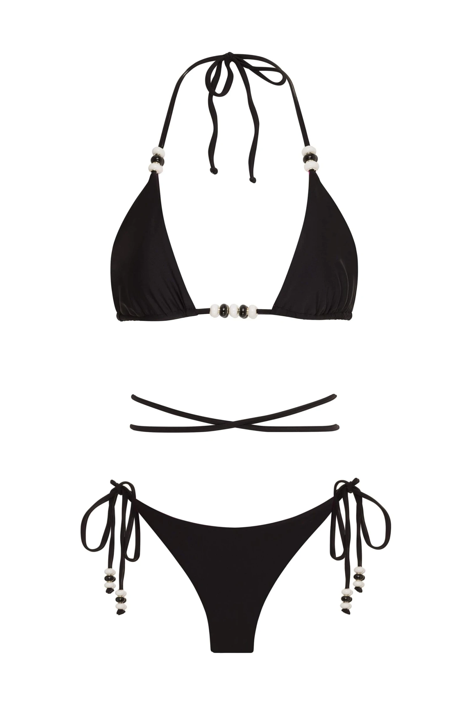 Feel sexy and comfortable in this timeless triangle top with a modern twist. It’s reversible, so it will give you an option of two colors depending on your mood, featuring Marano glass accessory beads and long ties at the waist.
