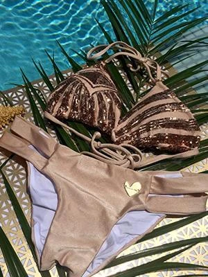 - Cream low rise bottoms with gold Montoya heart signature piece