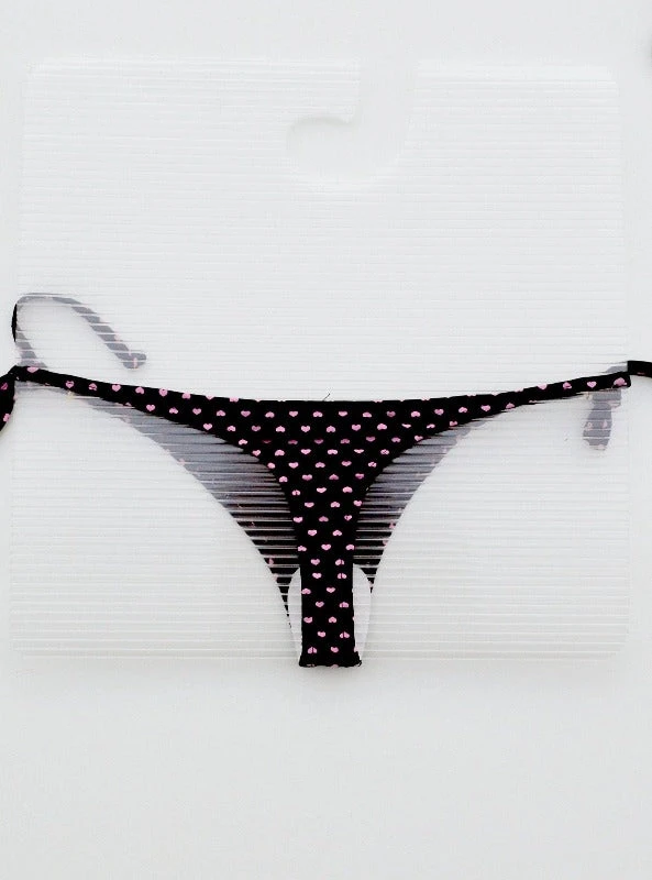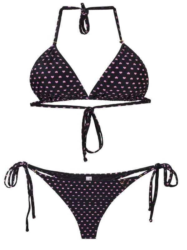 Our Montoya Brasilerita thong set is one of a kind, limited edition piece. Made in an ultra luxury fabric that turns heads at the pool or beach. The fabric is a sexy and fun black with pink heart print. Since this set is completely exclusive, you will be ONLY ONE to own this hot bikini set!!