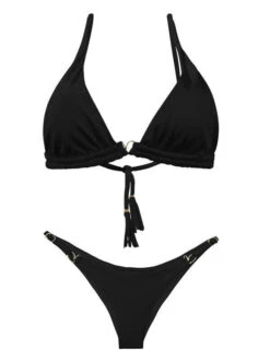 Notorious Swimwear Gold Chains Of Love Triangle Top & Cheeky Scrunch Bottom Swimsuit Bikini Set