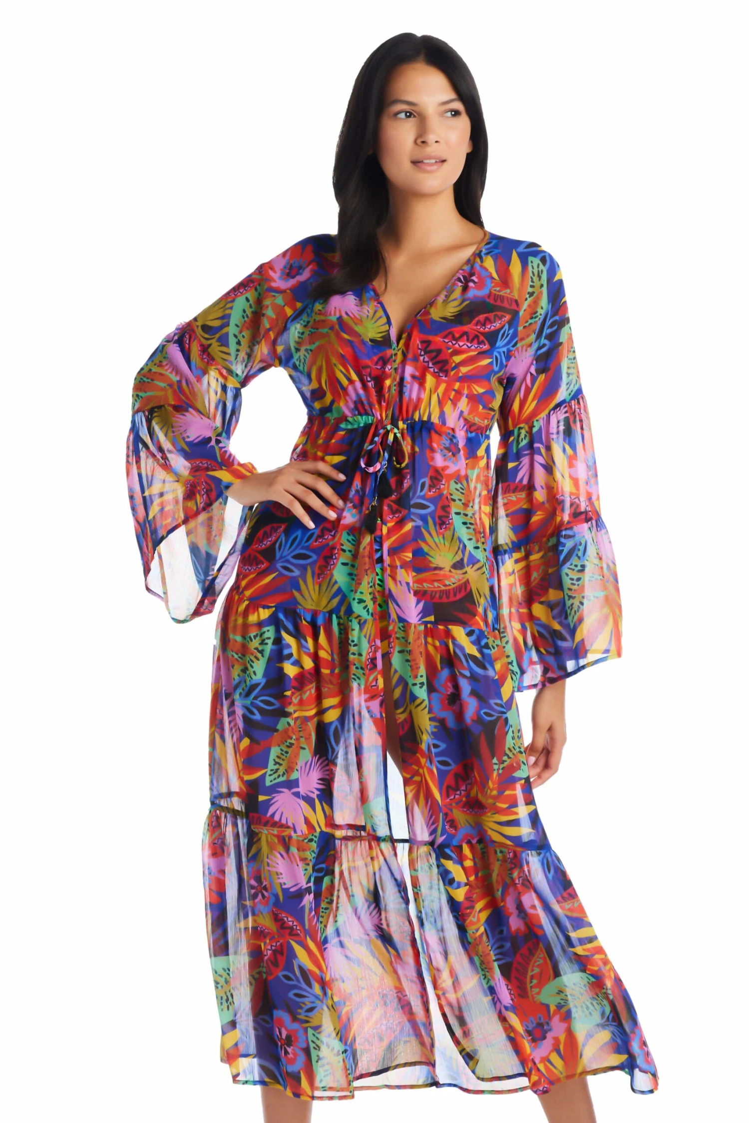 The long dress cover-up from our Night Safari collection offers style and comfort whether you are strolling on the beach or having lunch by the pool.