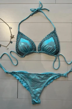 Liliana Montoya Swim B056SB6C Brown / Cream Sequin Triangle Top And Double Strap Bottom Swimwear Set