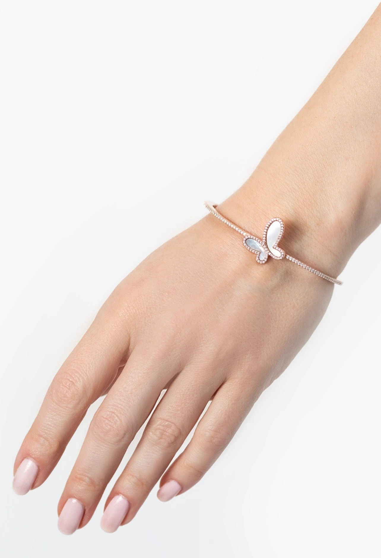 Simply Gorgeous! Silver butterfly bracelet with mother of pearl wings, encrusted with CZ.Â