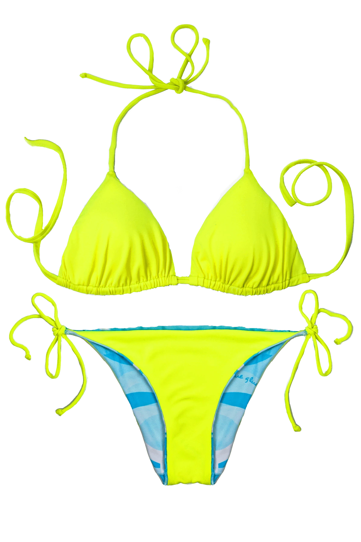 Soft sailor blue and white ocean waves print with neon yellow reversible kini on the other side. No matter which ways you wear this bikini, you b’ beach -babe ready!